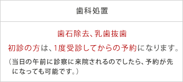 - 当院受付で直接、もしくは、電話にてご予約下さい。